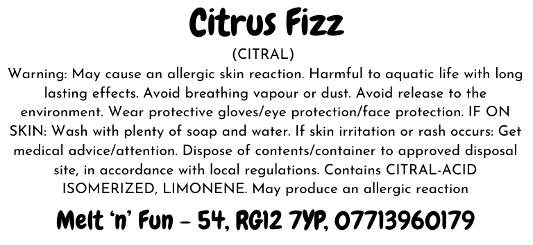 Fizzy lemon, lime and grapefruit on a heart of fizzy citrus a touch of apple and sweet raspberry with a base of vanilla and sugar.
