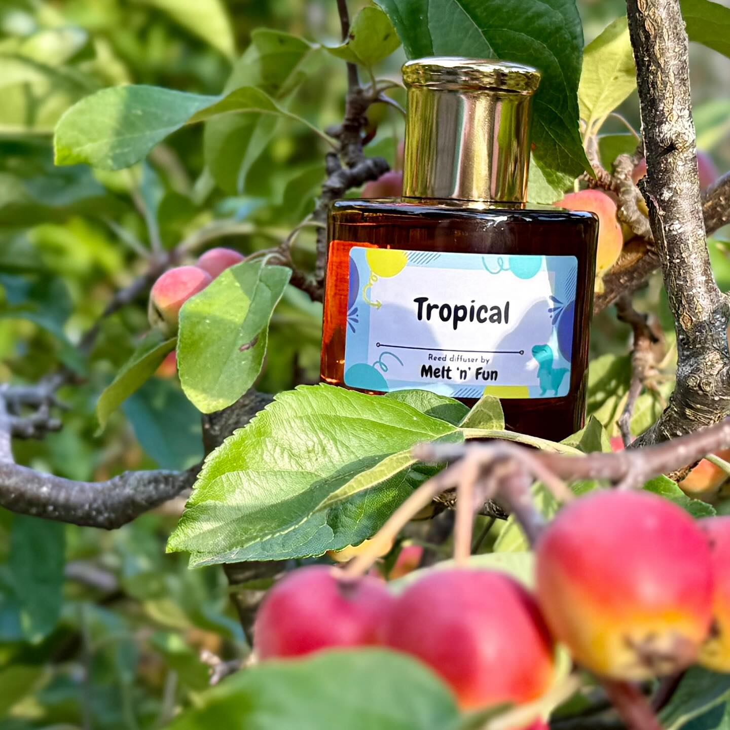 Love yourself a fruity scent? This reed diffuser is for you! Our Tropical reed diffuser opens with scents of cucumber, mango and melon. It has a musky base with jasmine undertones and mid-level tones of coconut, pear and strawberries. All together, it’s the perfect fruity scent for your home!